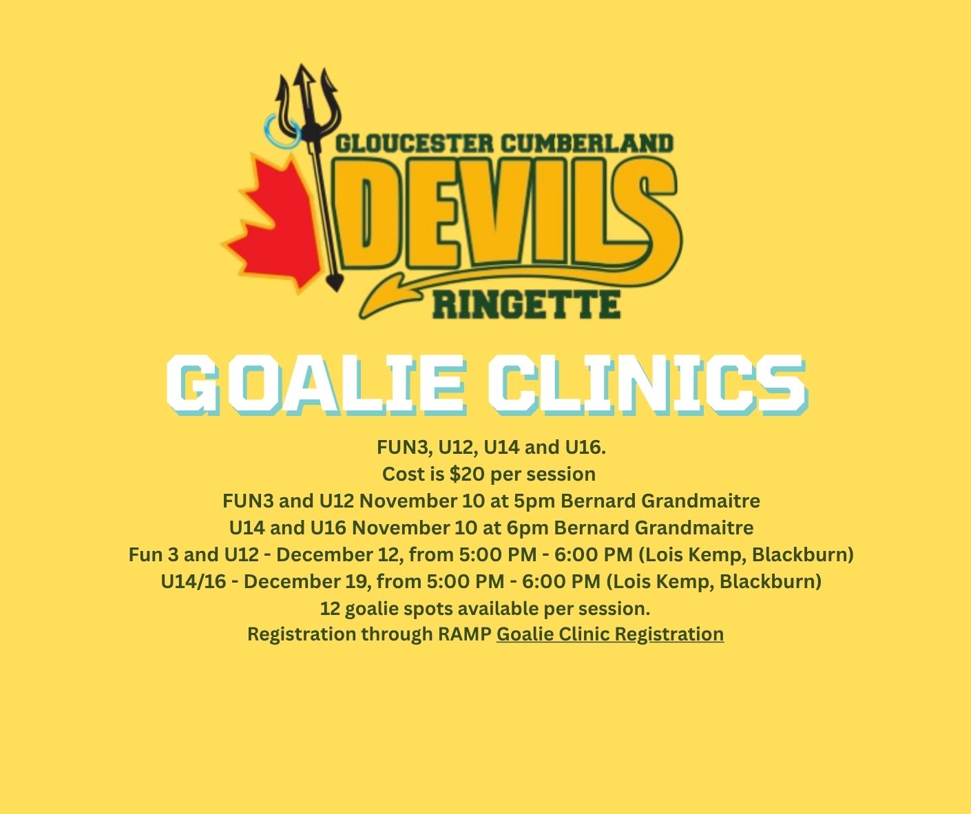 Registration through RAMP Goalie Clinic Registration